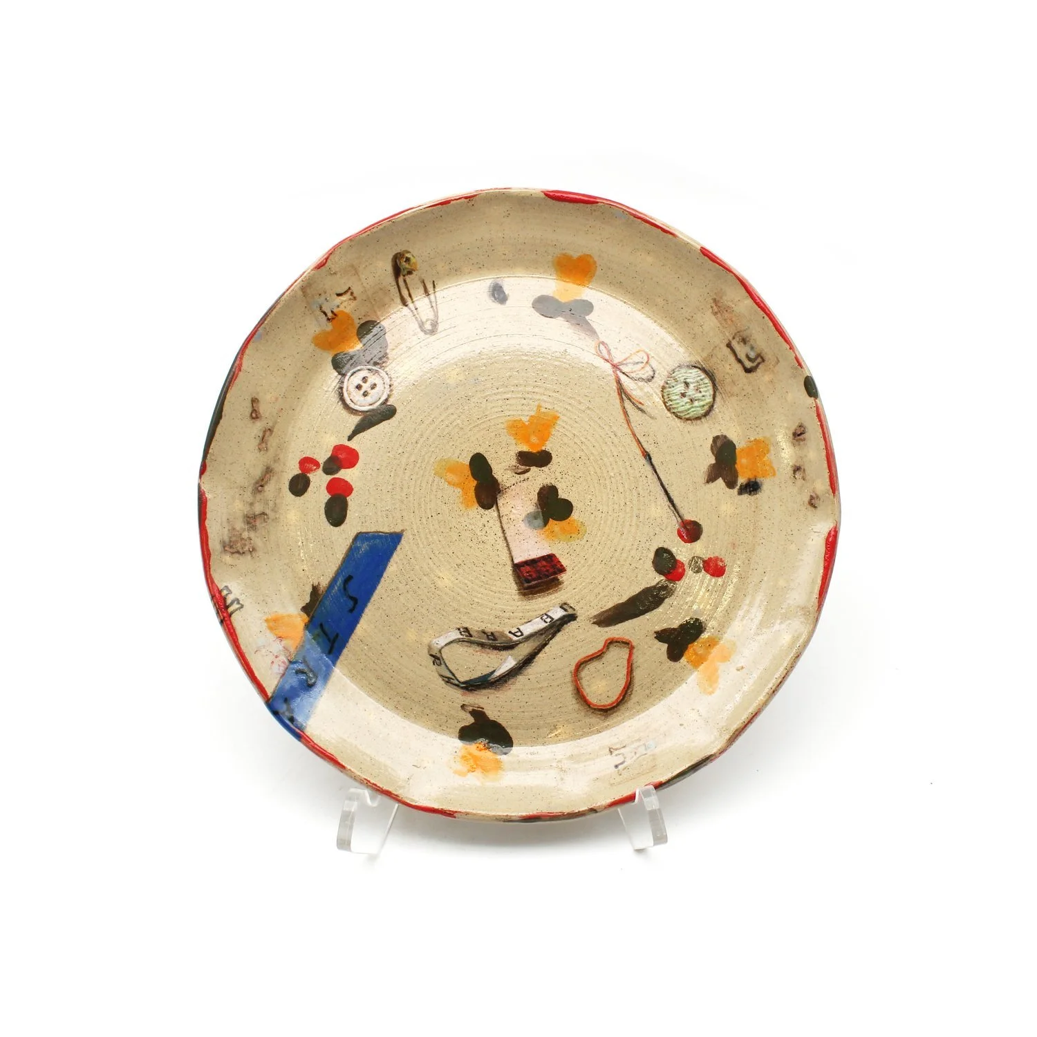 Plate for All I Want I Have, 2022. 9 x 9 x 1, underglaze on thrown vessel.
